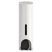 - ✔The "New Slim Look" design ✔Vertical style window for soap level indication ✔Key - double hole lock tabs ✔Permanent install with screw sets or adhesive for effortless installation ✔Special designed thumb pressing action for easy dispensing ✔350ml capacity ✔Private silkscreen labeling available